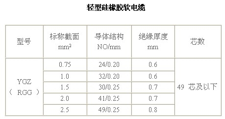 產品特性: 1、額定溫度:-50℃~+200℃(高使用環(huán)境溫度:200℃ 低使用環(huán)境溫度: -50℃) 2、額定電壓:YGZ300/500V、YGC450/750V 3、導 體:單根或多股鍍錫銅絲 4